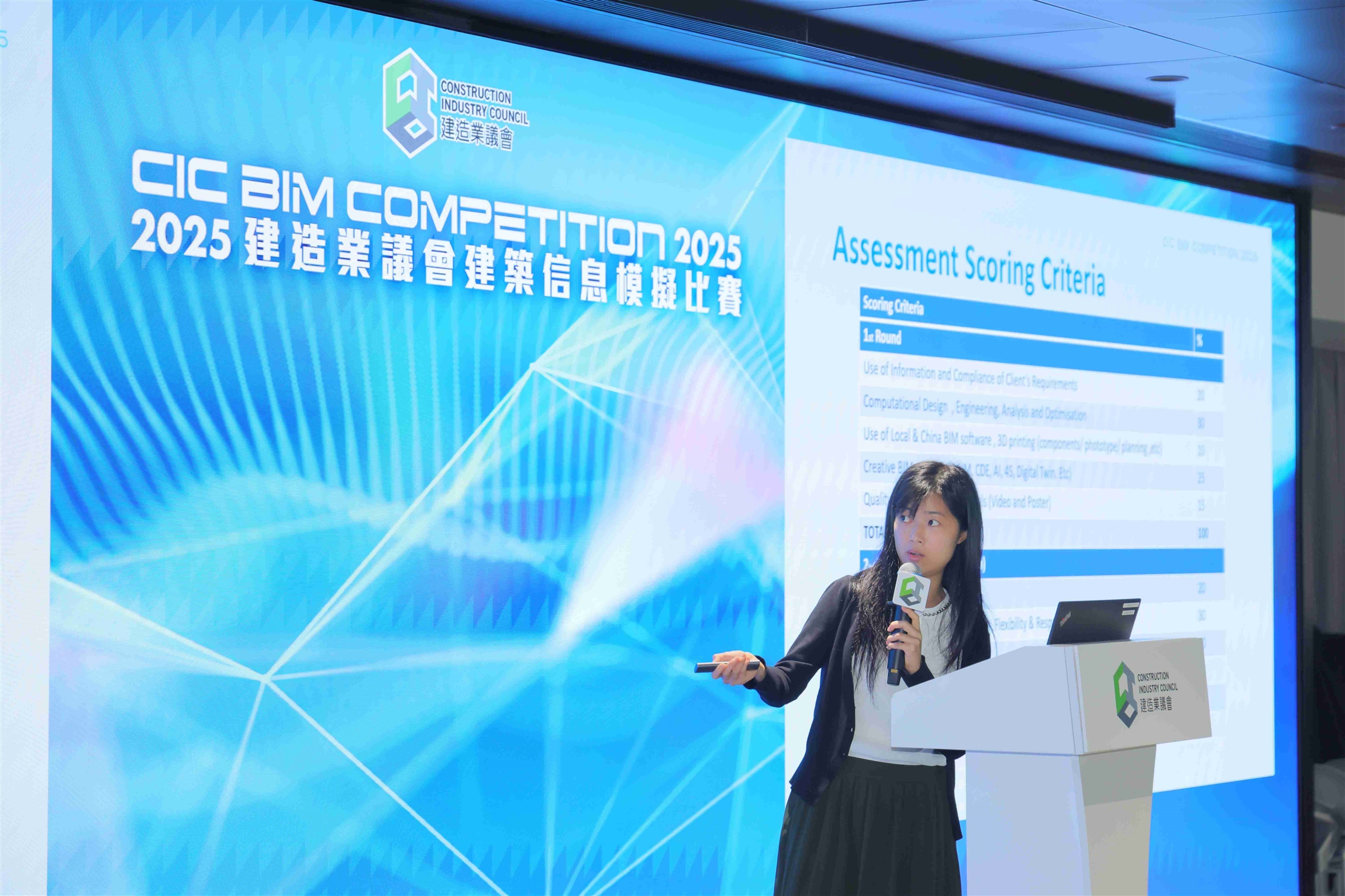 比賽設有兩輪,所有隊伍先在第一輪根據項目設計要求設計建造業議會創新學院的構思方案,再由建築信息模擬專家組成的評審團隊,從眾多作品中選出 10 支隊伍進入第二輪。獲選隊伍需於 12 小時內,按照當日公布的新增要求,即時修改首輪作品,並於翌日向評審團匯報最終作品。